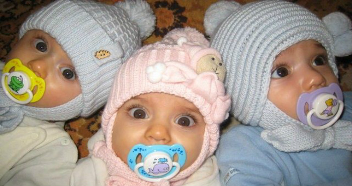 Коли я завагітніла, на першому УЗД нам сказали, що буде двійня. Ми з чоловіком були трохи вражені цією новиною. Це так тяжко. Старшій 10 років, і ми зважилися на хлопчика, а вийшло двоє. Але нічого вже не зробиш, будемо ростити ще двох. Адже це так чудово! У лікарні завжди запитувала у лікаря: «Все нормально? Мені здається, тільки один ворушиться ». Але лікарі завжди відповідали: «Все добре». На мій день народження приїхали батьки і сестри. Ми посиділи, відзначили. Я пішла відпочивати. На наступний день, рано вранці, біжу до чоловіка і кажу: » Вези в полог овий будинок «. Він привіз мене, і через годину я народила трійню.