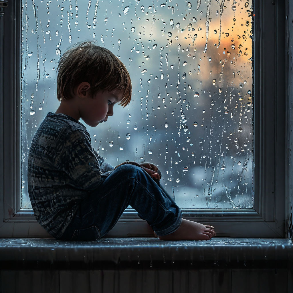 Ваня большой, ему уже шесть, и плакать такому парню “не с руки”. Мальчик крепился изо всех сил, прикусывал нижнюю губу и не замечал, что слёзы текут из его глаз уже сами, как капли дождя, что стекали по оконному стеклу. Сторожу хотелось усесться в своё удобное кресло, включить маленький телевизор и распивать чай. Но пацана оставить он не мог, жалко его было. Вот и переминался пожилой мужчина с ноги на ногу, рядом с подоконником. Время от времени тоже выглядывал в окно.